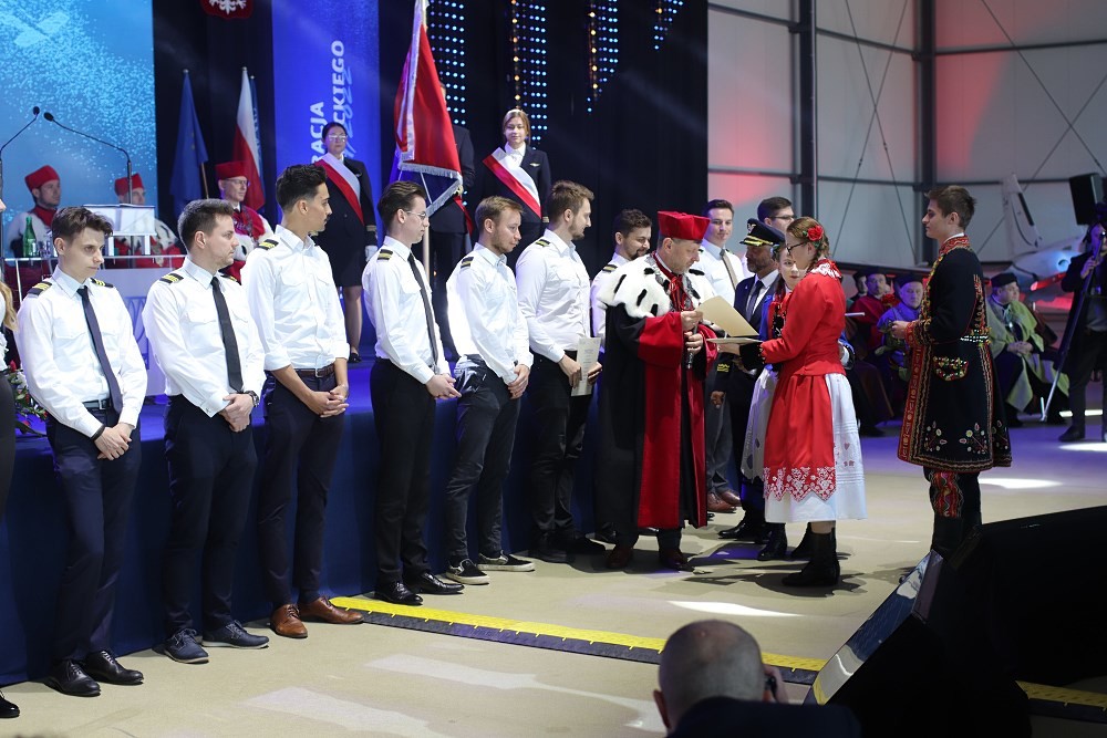 Wśród stałych elementów tego wydarzenia (przemówienie JM Rektora, ślubowanie studentów pierwszego roku, wręczenie odznaczeń państwowych, wykład inauguracyjny) nie zabrakło momentów szczególnie ważnych dla pracowników OKL oraz studentów, którzy w ośrodku zdobywają zawód pilota. 30 studentów Wydziału Budowy Maszyn i Lotnictwa, kierunku lotnictwo i kosmonautyka, specjalności "pilotaż", otrzymało w tym roku z rąk JM Rektora prof. dr. hab. inż. Piotra Koszelnika oraz dyrektora Ośrodka Kształcenia Lotniczego dr. inż. Arkadiusza Rzucidło, certyfikaty ukończenia szkolenia do licencji pilota komunikacyjnego. Uroczystość uświetnił Chór Akademicki Politechniki Rzeszowskiej.