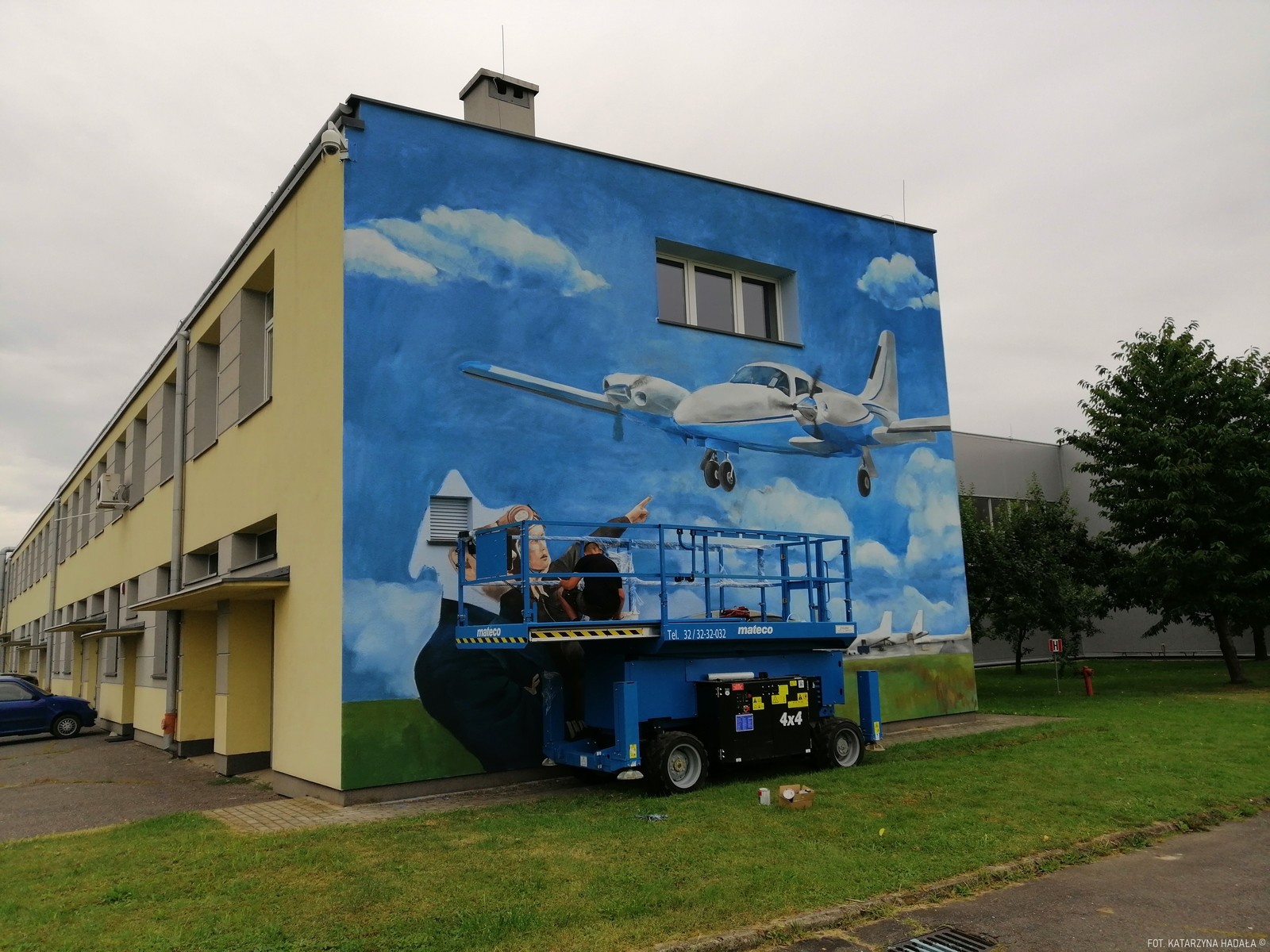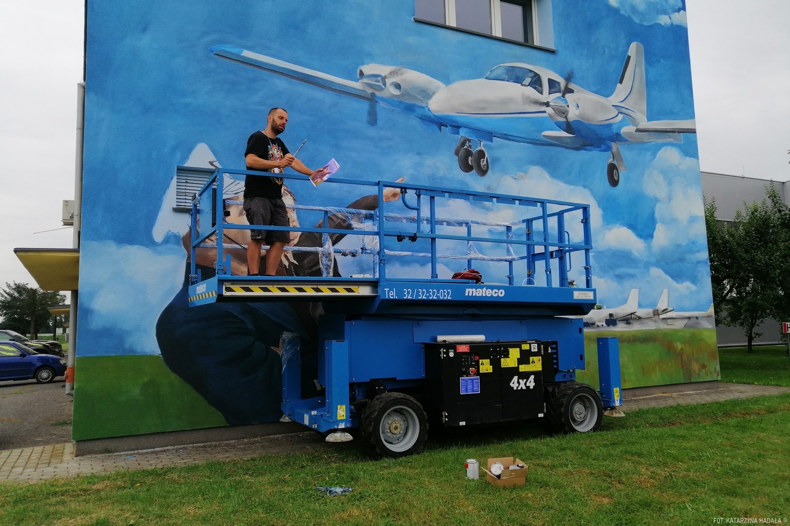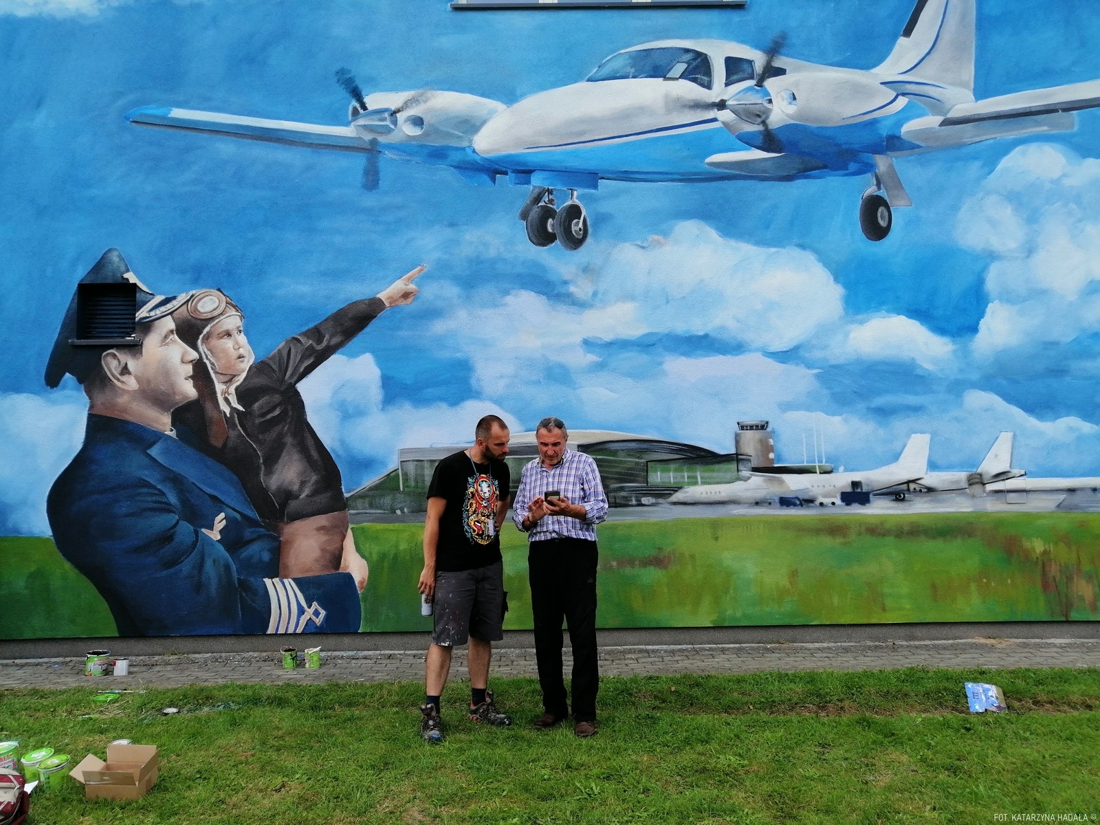 Ten konkretny mural lotniczy, w Jasionce, od lat związanej z tą branżą to pierwsza tego rodzaju praca w okolicy i pierwsza tutaj, na pełnowymiarowym murze dla tego artysty. Powstał dzięki hojności sponsora związanego z lotnictwem, który chce pozostać anonimowy. (KH)