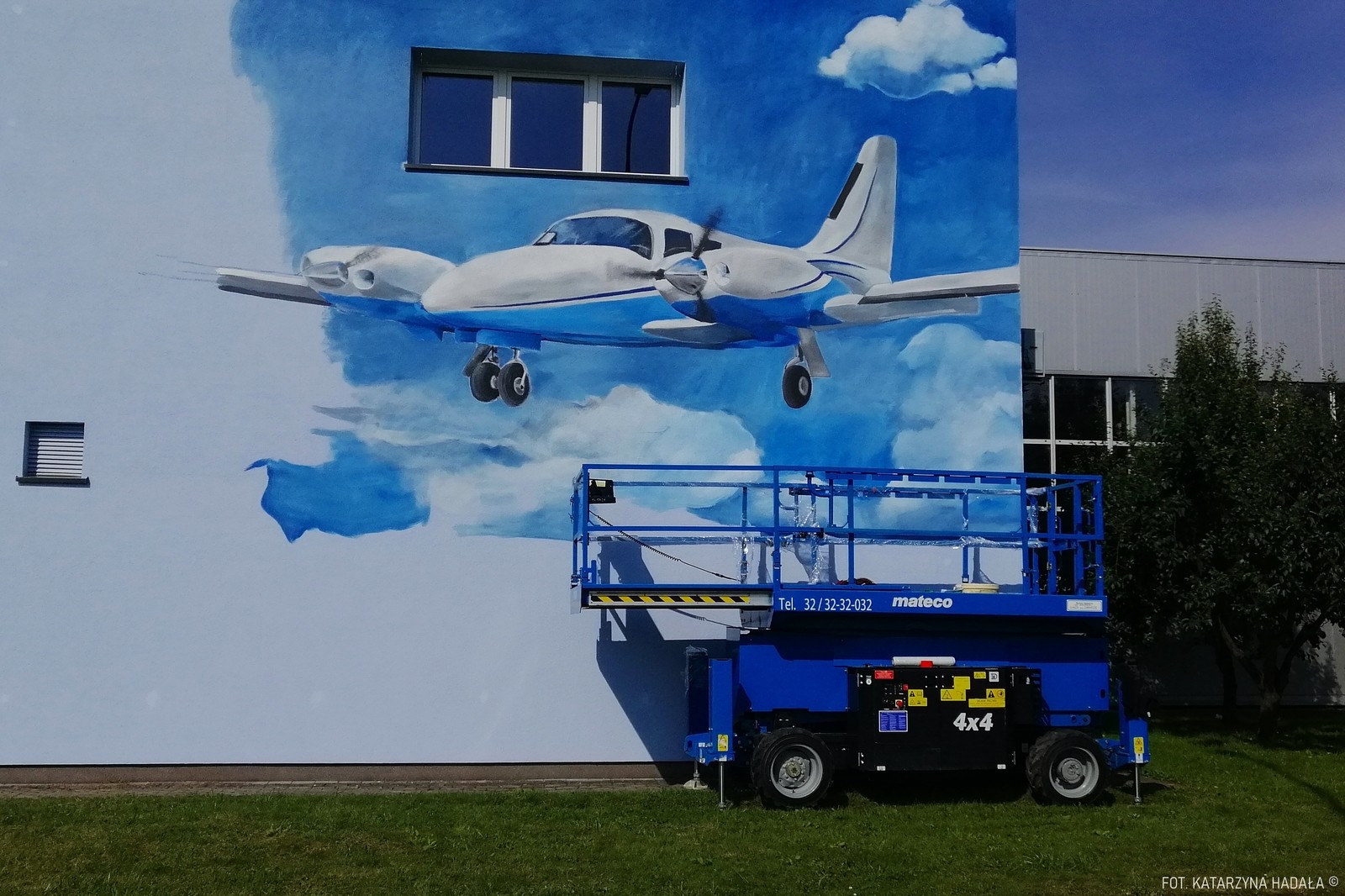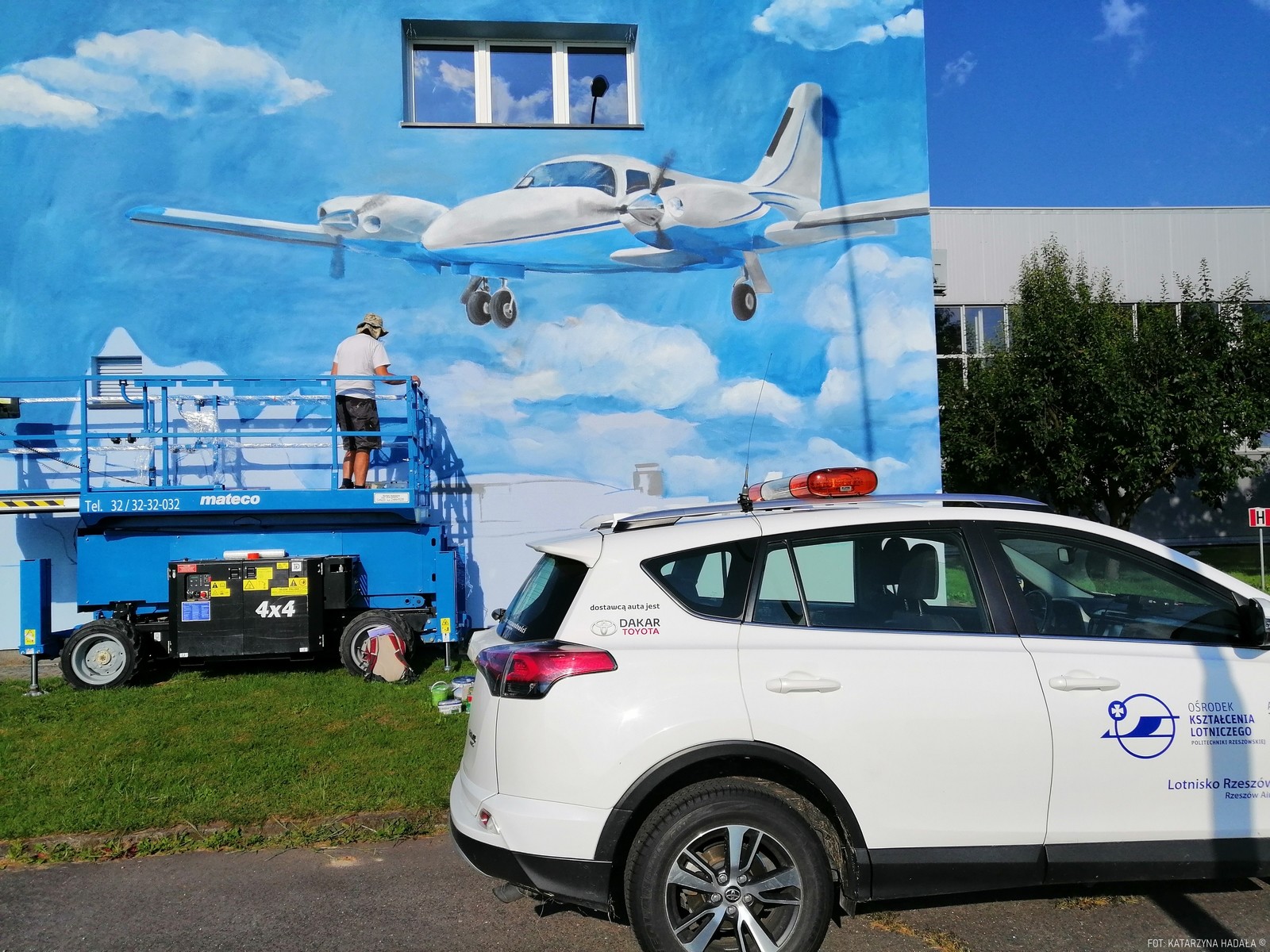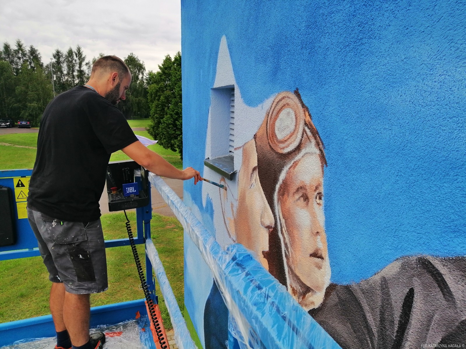 Ten konkretny mural lotniczy, w Jasionce, od lat związanej z tą branżą to pierwsza tego rodzaju praca w okolicy i pierwsza tutaj, na pełnowymiarowym murze dla tego artysty. Powstał dzięki hojności sponsora związanego z lotnictwem, który chce pozostać anonimowy. (KH)