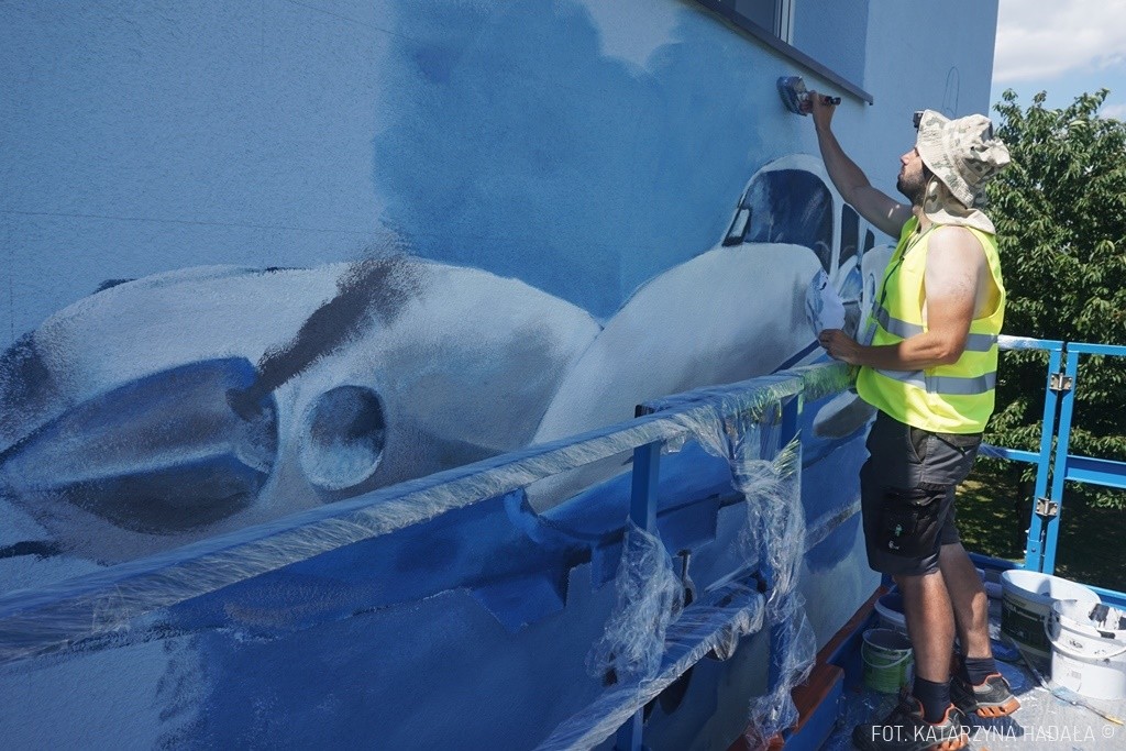 - Chcieliśmy pokazać w czytelny i atrakcyjny sposób to lotnicze miejsce. Zasygnalizować, że jest to jednostka związana z awiacją, ze szkoleniem przyszłych pilotów. Ten mural ma także inspirować do lotnictwa przyszłe pokolenia. Mając to na względzie wspólnie z twórcą opracowaliśmy symboliczną wizualizację tych założeń. – mówi instr pil. Mieczysław Górak, dyrektor OKL PRz.