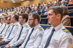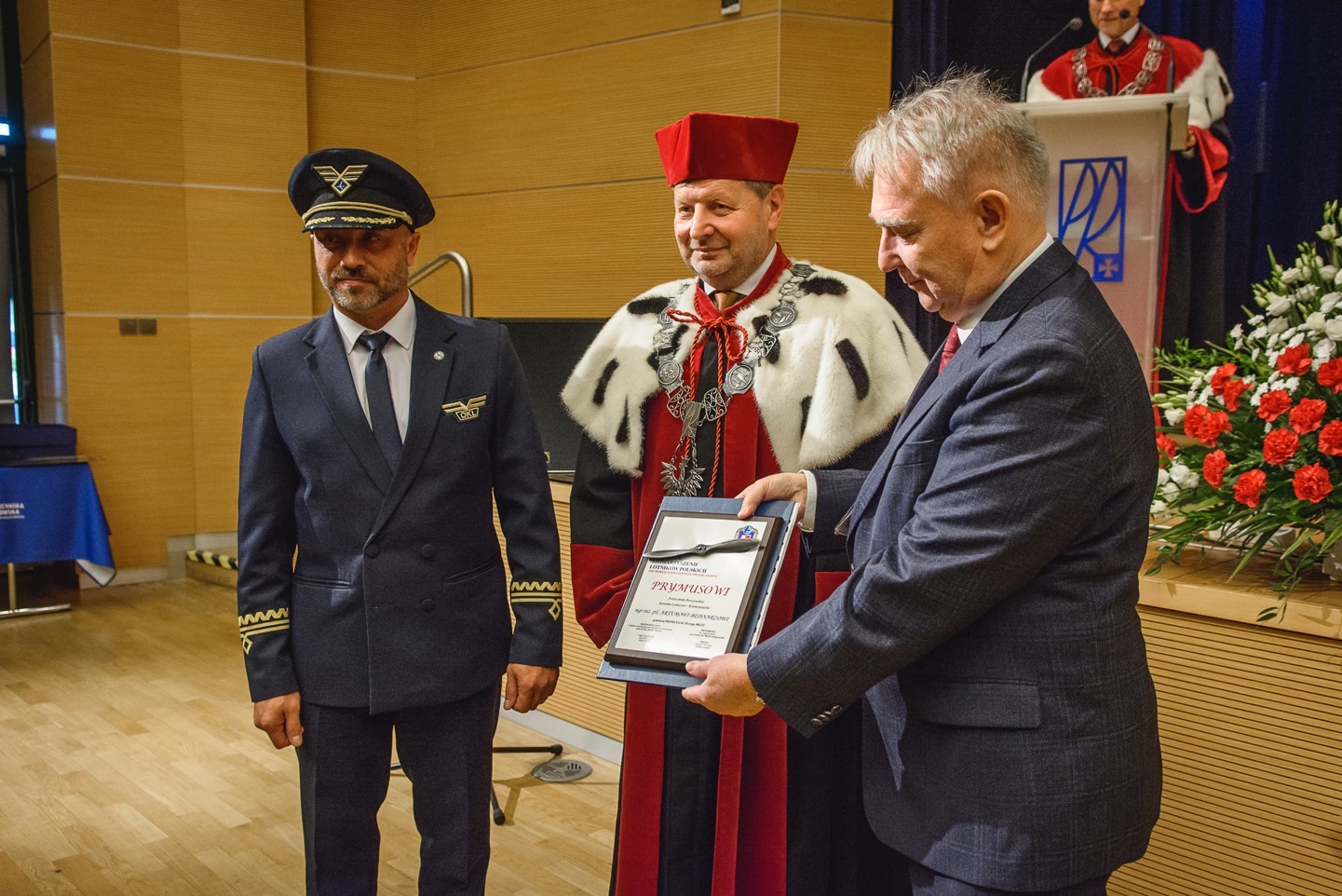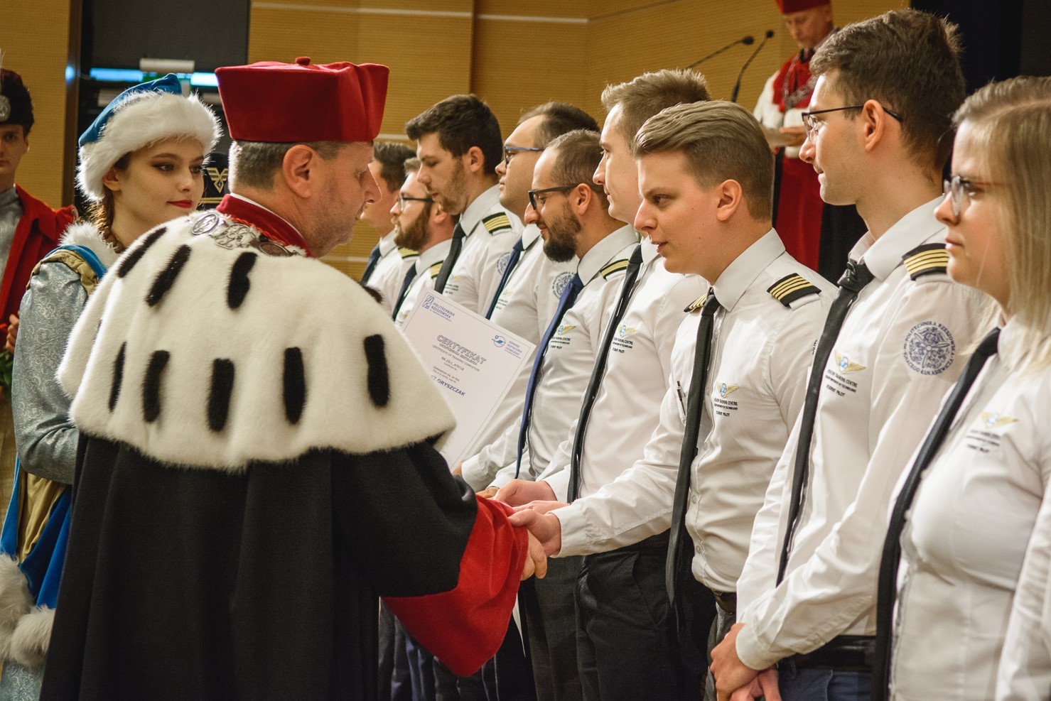 Certyfikaty oraz pagony wręczyli rektor Politechniki Rzeszowskiej prof. dr hab. inż. Piotr Koszelnik i dyrektor Ośrodka Kształcenia Lotniczego dr inż. Arkadiusz Rzucidło.