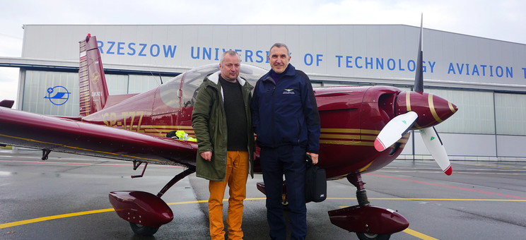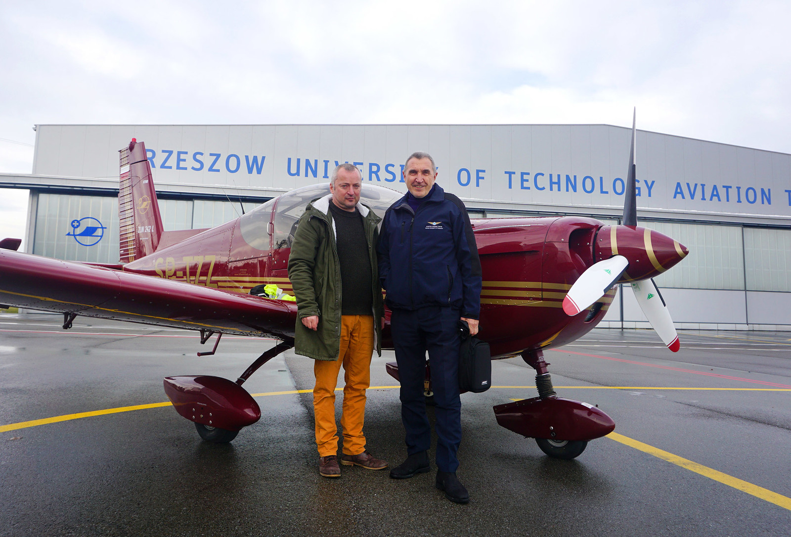 Za sterami statku powietrznego o znakach SP-TZZ zasiedli: dyrektor Ośrodka Kształcenia Lotniczego, instr pilot Mieczysław Górak oraz Krzysztof Grabek, instr pilot OKL.