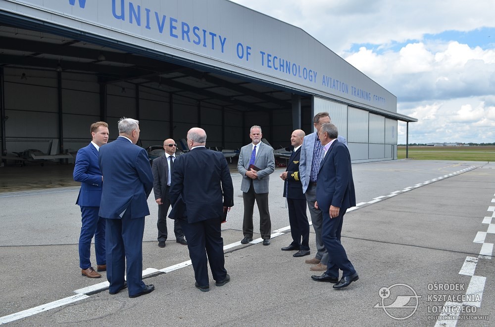 W Poniedziałek, 25 czerwca 2018 r. w Ośrodku Kształcenia Lotniczego w Jasionce gościli przedstawiciele amerykańskiej korporacji z branży lotniczej – Boeing Company, Ministerstwa Spraw Zagranicznych RP oraz Urzędu Marszałkowskiego Województwa Podkarpackiego. Ze strony Politechniki Rzeszowskiej w spotkaniu uczestniczyli: Prorektor ds. kształcenia dr hab. inż. Grzegorz Masłowski prof. PRz. oraz Dziekan Wydziału Budowy Maszyn i Lotnictwa, prof. dr hab. inż. Jarosław Sęp. Gospodarzem spotkania był Dyrektor Ośrodka Kształcenia Lotniczego, instr. pil. mgr Mieczysław Górak. W trakcie wizyty Goście zapoznali się z historią OKL, jego bieżącą działalnością oraz zwiedzili całą infrastrukturę Ośrodka.