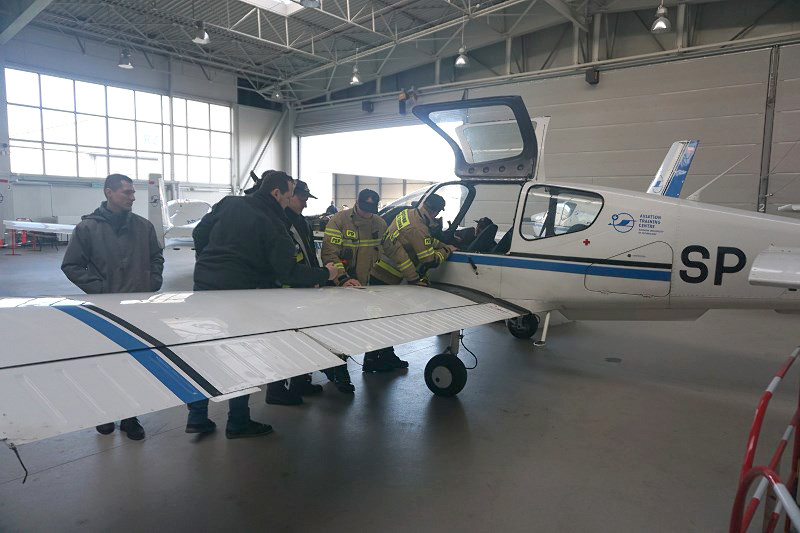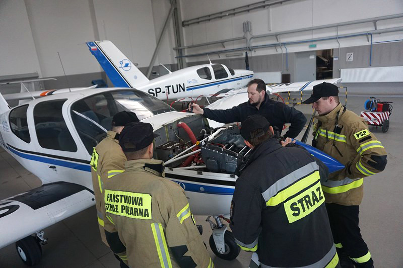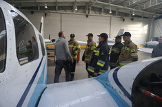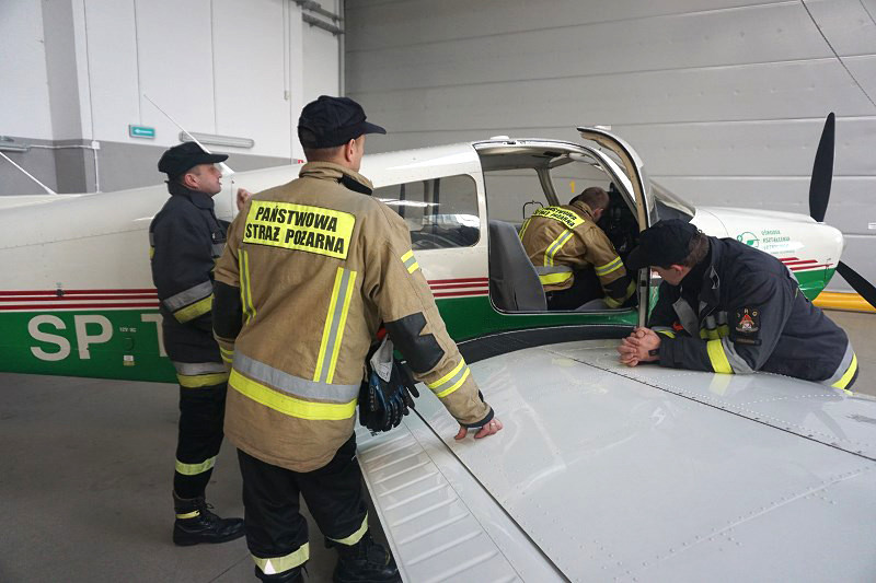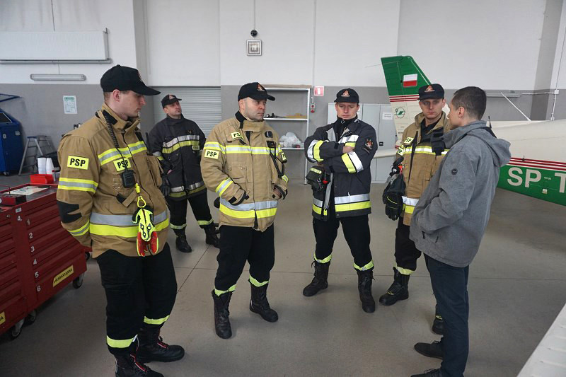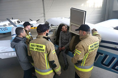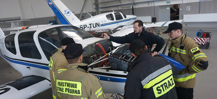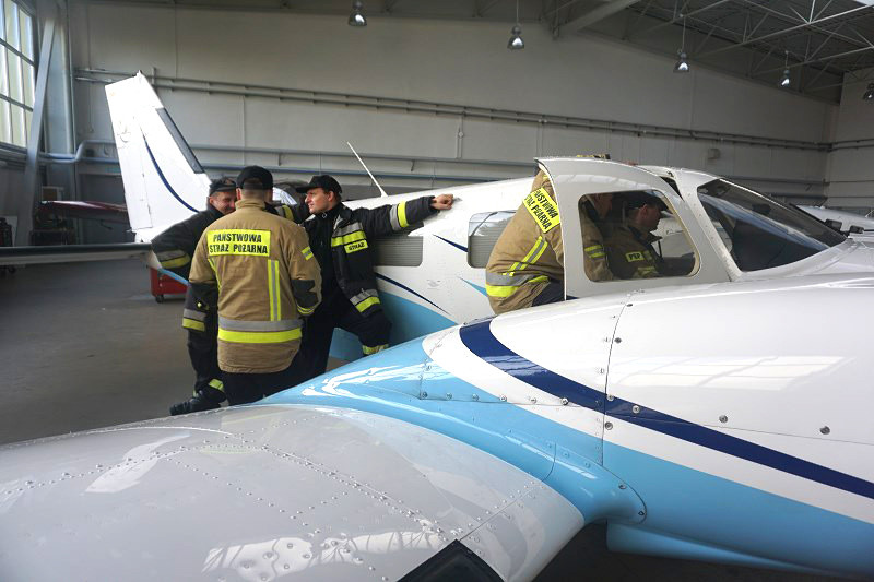 W ćwiczeniach wzięli udział strażacy z Państwowej Straży Pożarnej, która zabezpiecza lotnisko Politechniki Rzeszowskiej w Jasionce. Strażacy zapoznawali się z infrastrukturą i wyposażeniem ośrodka oraz doskonalili swoją wiedzę z zakresu budowy i konstrukcji samolotów eksploatowanych w OKL.